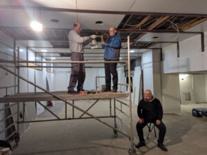 - Aktuell wird die Deckenbeleuchtung installiert, anschließend erfolgt das Streichen der Wände.