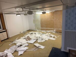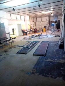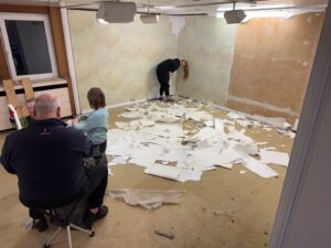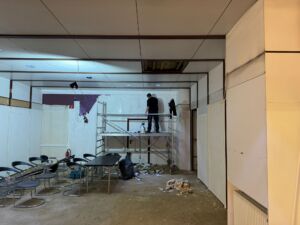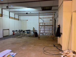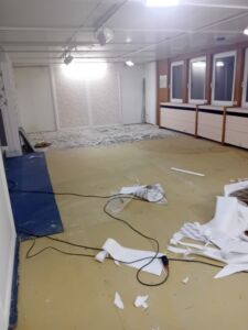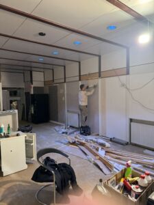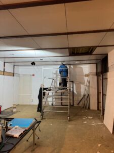 - Aktuell wird die Deckenbeleuchtung installiert, anschließend erfolgt das Streichen der Wände.