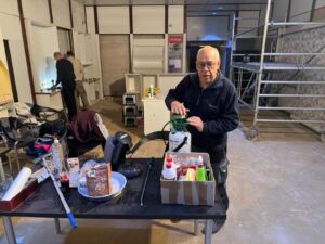 - Danach folgt der endgültige Aufbau der Rennstrecke und die Einrichtung des Bahn- u. Schrauberraumes.
