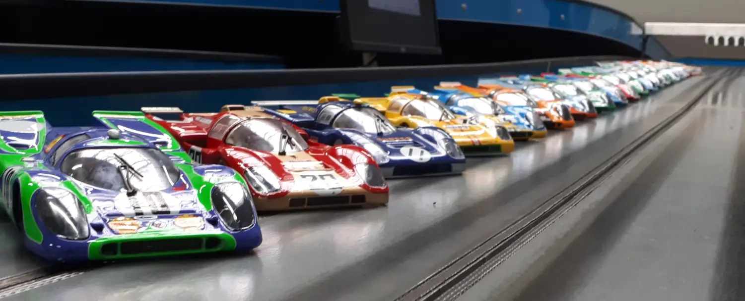 Wenn 26 Fahrerinnen und Fahrer zum Rennbahnfahren zusammen kommen, dann ist das in Coronazeiten an sich schon etwas ganz Besonderes. Wenn dann originallackierte Modelle historischer Klassiker des Porsche 917K und des Ferrari 512M ausgefahren werden, ist dies zusätzlich ein optischer Genuss. Wenn die dabei eingesetzten Modelle keine Selbstbau-DSC-Klassiker sind, sondern stattdessen längst vergriffene Fertigfahrzeuge und Bausatzmodelle von BRM, die man auf deutschen Clubbahnen gefühlt eigentlich nie sieht, dann ist dies schon extrem außergewöhnlich.