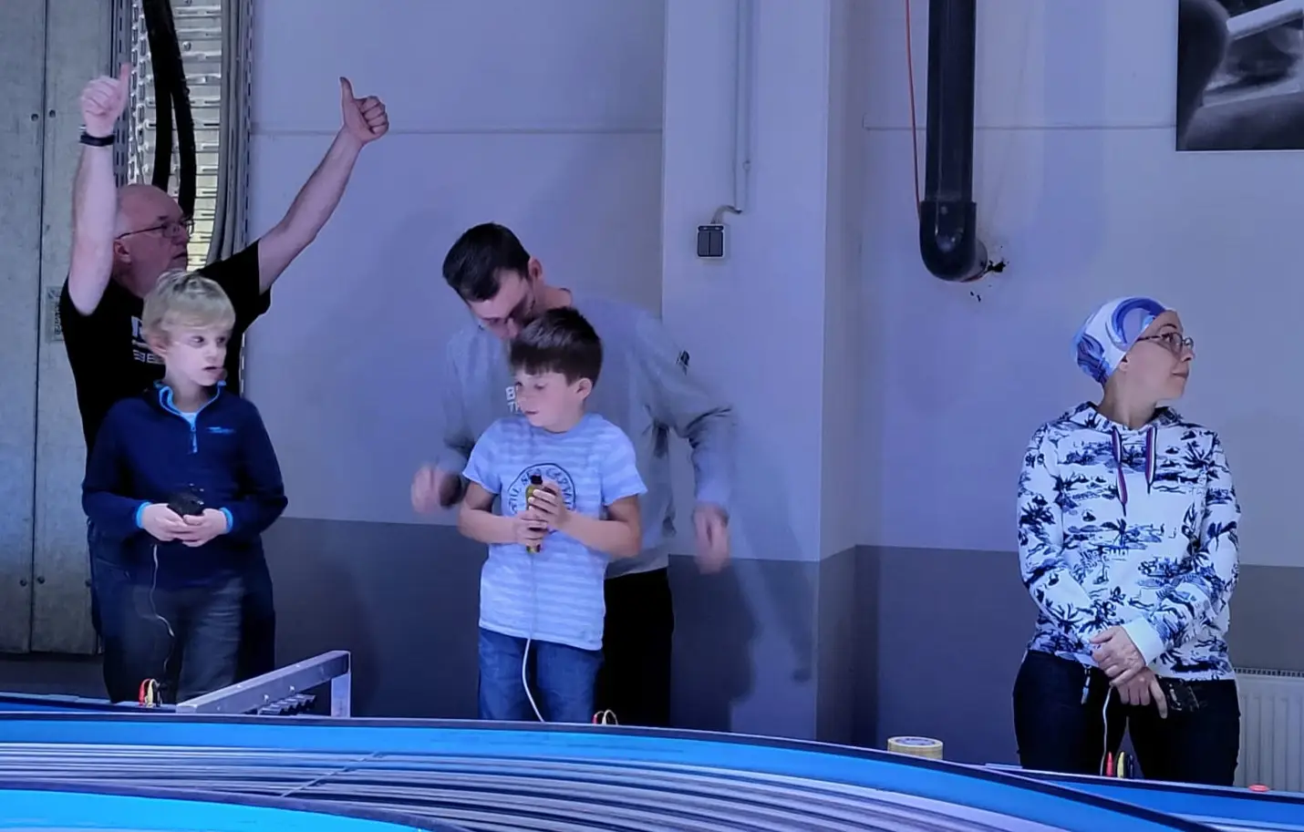 Auch wenn die Rennbahn des SRK selbst unverändert ist, so ist der Gesamteindruck, gerade auch während des Fahrens, ein völlig anderer. Mittlerweile ziert die Bahn eine Event-LED-Beleuchtung der besonders edlen Art. Maxxens Netzwerk in die örtliche Unternehmerszene macht dann mitunter Wunder möglich, da sich irgendwie, irgendwo, irgendetwas ergibt. Dank Marcowitschs Strippenzieherei, Bernies Schmiedekunst und der handwerklichen Dynamik der anderen fleißigen Reiniger, Schrauber und Bastler im SRK-Universum, erstrahlt die Bahn jetzt LED-fluoreszierend blau-weiß. Das Lichtensemble kann allerdings auch noch viel mehr.